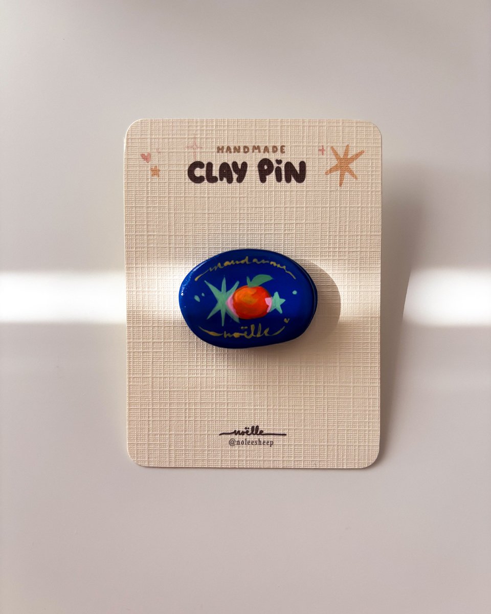 Pin de arcilla modelado a mano, pintado con pintura acrílica y barnizado con acabado gloss